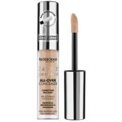 Corrector multiuso para un rostro sin imperfecciones, con un impecable acabado natural. Asegura un acabado larga duración. Su fórmula waterproof garantiza un resultado perfecto durante todo el día incluso en condiciones de lluvia, humedad o sudor. La cobertura alta permite disimular las imperfecciones en todo el rostro, bien sean ojeras, manchas o rojeces. La textura líquida se extiende con facilidad y proporciona una sensación ligera y placentera en la piel, para un resultado natural. La fórmula está enriquecida con activos de cuidado facial para ofrecer más que maquillaje: el ácido hialurónico, los probióticos y el té verde hidratan, revitalizan y combaten los radicales libres. El maxi tamaño está pensado para poder usar el corrector en todo el rostro.