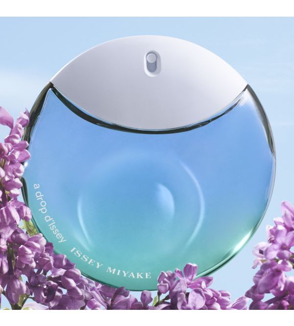 La lila, ingrediente emblemática de A Drop d'Issey, se empapa de un acorde de lluvia, aportando a Eau de Parfum Fraîche inflexiones más frescas.