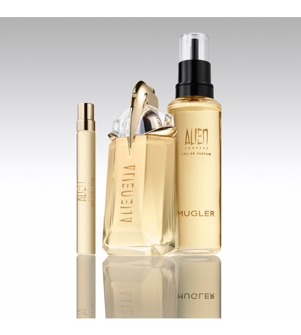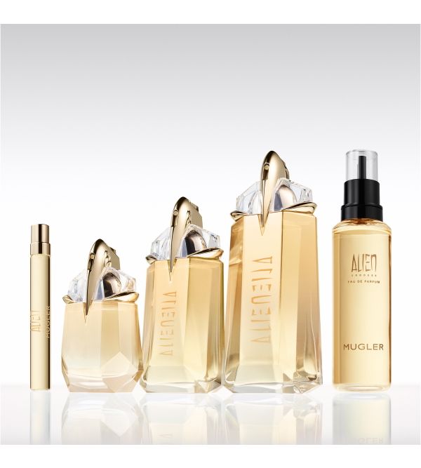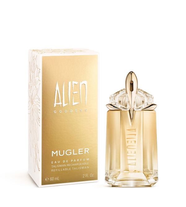 Alien Goddess, el nuevo perfume recargable femenino de MUGLER, es una promesa sagrada de feminidad y esperanza. En una época en la que la gente busca la luz en la oscuridad, una diosa solar allana el camino hacia un destino milagroso pero verdadero. La mujer que lleva Alien Goddess Eau de Parfum está en perfecta armonía con su cuerpo y su alma. Rodeada de un resplandor solar místico e incandescente, realzado por notas chispeantes de bergamota, jazmín indio Grandiflorum y vainilla Bourbon, está dispuesta a engrandecer el mundo que la rodea con gloria, generosidad y benevolencia. NOTAS OLFATIVAS: Creación floral oriental amaderada, Alien Goddess de MUGLER deja una estela facetada por los ingredientes más gloriosos de la paleta del perfumista que hipnotizará tus sentidos. Este nuevo perfume ALIEN para mujer es un ramillete floral solar que chispea de luminosidad facetado en torno a 3 revelaciones. Revelación radiante: La fragancia se abre con la radiante revelación de una chispeante esencia de bergamota italiana, que recuerda los primeros rayos de sol. Un intenso estallido de luz que atraviesa la fragancia, similar a la energía positiva de la diosa solar. Revelación milagrosa: Una intensa flor solar impulsa el Eau de Parfum Alien Goddess directamente a las alturas, dando toda su fuerza a su mensaje benévolo. Actuando como un deslumbrante prisma floral, da el protagonismo a una flor suprema: El jazmín Grandiflorum, una flor verdaderamente dorada, símbolo de feminidad y sensualidad. Revelación consciente: La conclusión del mensaje de paz y esperanza. Revelación Mindful desvela la adictiva plenitud de una vainilla Bourbon. Elaborada para MUGLER, esta infusión Premium es a la vez suave y envolvente como un velo de seda reconfortante. Una deliciosa nota de Vainilla con tonalidades balsámicas, que deleitará sus sentidos con profundas y misteriosas vibraciones cálidas" Frasco: Un Eau de Parfum seductor y misterioso en un nuevo y fascinante frasco talismán. Alien Goddess 90ml, para la estantería de tu baño. Alien Goddess 60ml, para su mesita de noche. Alien Goddess 30ml, para su bolso. Este cautivador frasco adornado en oro, a la vez orgánico y onírico, con una impresionante laca metálica matizada que evoca el amanecer, deja una impresión duradera. También está disponible en un frasco de recarga de 90 ml para que su experiencia de fragancia favorita nunca esté lejos.