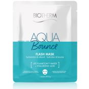 Aqua Bounce Flash Mask es una mascarilla hidratante de efecto segunda piel de Biotherm que infunde profundamente la piel con una hidratación intensa, impulsada por la combinación de ácido hialurónico y agua probiótica Life Plankton, que ayuda a eliminar las impurezas con un efecto exfoliante, absorbe el sebo y purifica la piel Una sola aplicación, es suficiente para conseguir una piel profundamente rellena, súper húmeda y flexible Textura: Descubre la mascarilla Aqua Bounce Flask Mask con un 100% de algodón cargada de humedad infundida con ácido hialurónico, creada para retener más humedad que las mascarillas clásicas Tan pronto como toca su piel, su efecto de segunda piel ayuda a que los ingredientes activos penetren profundamente para una hidratación fresca y duradera, lo que la convierte en la mejor mascarilla para la piel del mercado Es perfecta para aquellas chicas que manifiestan tirantez, zonas secas o síntomas de fatiga en la piel Resultados: HIDRATACIÓN FLASH 24H: Mejora significativa de la hidratación de la piel que dura 24 h después de una sola aplicación: + 54,82% después de 1 H / todavía + 12,04% después de 24 h AGUA BLOQUEADA: -31% de reducción de la pérdida de agua transepidérmica después de 1 hora, para un efecto protector y reparador sobre la función de barrera cutánea PIEL TONIFICADA: + 55% de mejora de la tonicidad de la piel después de 1 h PIEL ELÁSTICA Y FIRME + 18% de mejora de la elasticidad y firmeza de la piel después de 1 hora MENOS LINEAS FINAS -8% de reducción de líneas finas después de 4 semanas - Resultados de pruebas clínicas de eficacia hidratante, 24 mujeres - Resultados de pruebas clínicas de pérdida de agua transepidérmica, 25 mujeres - Resultados de pruebas clínicas de propiedades biomecánicas de la piel, 43 mujeres
