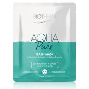 Aqua Pure Flash Mask es una mascarilla hidratante de Biotherm que actúa como una segunda piel que infunde profundamente la piel con una hidratación intensa, impulsada por la combinación de ácido salicílico y agua probiótica Life Plankton, para conseguir una piel pura en una sola aplicación Una máscara es suficiente para reponer y refinar profundamente su piel, con poros que parecen menos visibles y una piel que se ve purificada y fresca Ingredientes principales: Esta mascarilla hidratante está formulada con una combinación de: - Ácido salicílico, conocido por sus poderosas propiedades purificantes - La misma concentración de agua Life Plankton que se encuentra en un frasco lleno de su súper Concentrate * Esta combinación le dará a su piel un nuevo comienzo * Concentración de agua de plancton de vida en un frasco de súper concentrado de 50 ml Textura: Esta mascarilla hidratante 100% de algodón cargada de humedad está infundida con ácido salicílico, creado para retener más humedad que las máscaras tradicionales Tan pronto como toca su piel, su efecto de segunda piel ayuda a que los ingredientes activos penetren profundamente para una hidratación fresca y duradera de la piel, lo que la convierte en la mejor mascarilla hidratante para tener una piel más pura Resultados: HIDRATACIÓN FLASH 24H: Mejora significativa de la hidratación de la piel que dura 24 h después de una sola aplicación: + 54,82% después de 1 H / todavía + 12,04% después de 24 h AGUA BLOQUEADA: -31% de reducción de la pérdida de agua transepidérmica después de 1 hora, para un efecto protector y reparador sobre la función de barrera cutánea PIEL PURIFICADA: 79% de las mujeres encuentran que su piel se ve pura después de 4 semanas PIEL MÁS FRESCA: El 91% de las mujeres encuentran que su piel se ve fresca después de 4 semanas APARIENCIA MEJORADA DE LA PIEL: El 86% de las mujeres encuentra que su apariencia de piel mejora visiblemente después de 1 semana - Resultados de pruebas clínicas de eficacia hidratante, 24 mujeres - Resultados de pruebas clínicas de pérdida de agua transepidérmica, 25 mujeres - Resultados de la prueba de autoevaluación, 58 mujeres