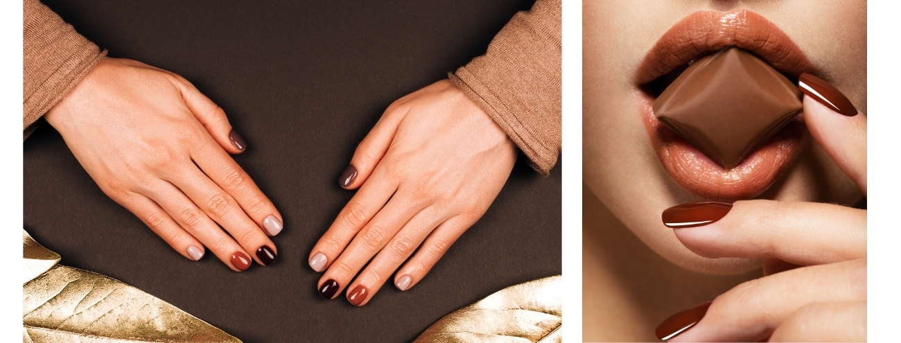 Es el momento de apostar por todos los colores otoñales: ocres, tierra, marrones, rojo ladrillo, berenjena… ¿no puedes decantarte por uno solo? Estás de suerte, pintarte una de cada color está también a la orden del día, bien sea con diferentes tonalidades de un color principal, o con cada uña de un color otoñal. ¿El color estrella de todos ellos? El marrón chocolate, sin duda.