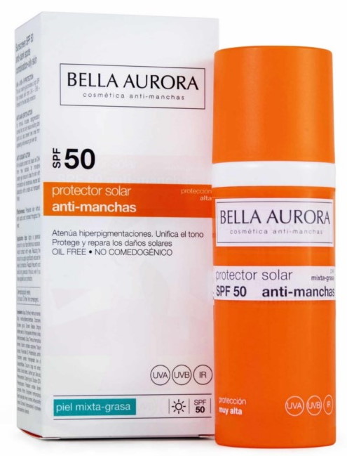 El paso más importante es la aplicación de un protector solar facial todos los días, incluso en invierno. Estarás protegiendo tu piel a la vez que evitas la aparición de manchas. Utiliza una crema solar de protección alta y renueva su aplicación las veces que consideres necesarias sobre todo en verano después de bañarte, cuando sudes o realices ejercicio. El protector solar anti-manchas de bella Aurora proporciona una protección alta frente radiaciones UVA, UVB e IR que garantizan la máxima protección frente a la exposición solar. Su fórmula incluye potentes activos despigmentantes que tratan las manchas existentes, reduciéndolas visiblemente y evitando la aparición de nuevas.