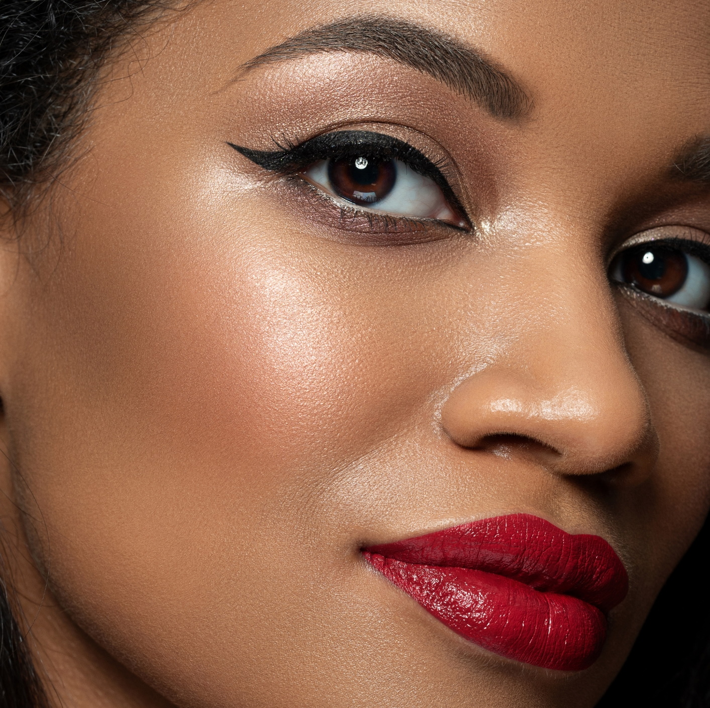 El delineado de ojos tipo «cat eye» es una buena opción para tu maquillaje de Navidad. Puedes usarlo sobre una sombra de ojos brillante o metalizada para un look más llamativo o si prefieres un acabado más natural utilízalo solo o sobre una base en tonos nude.
