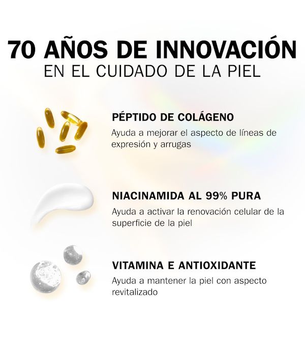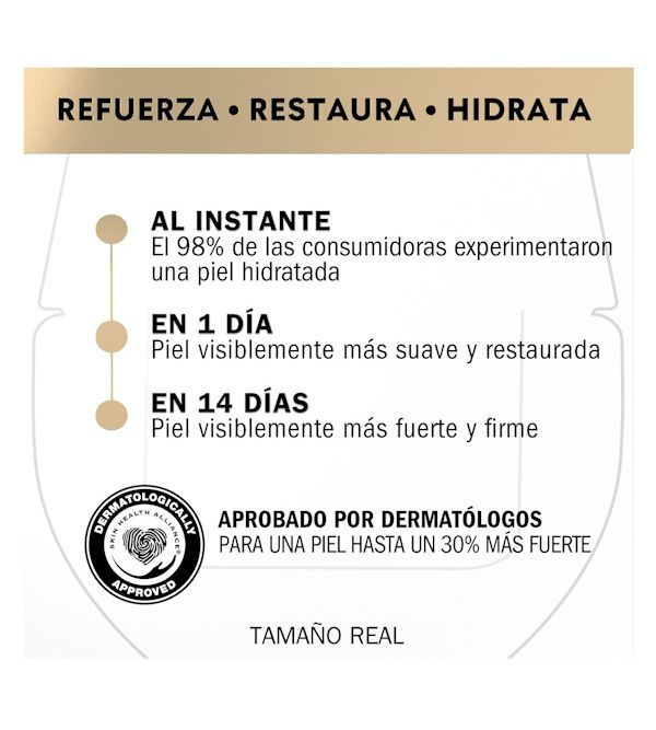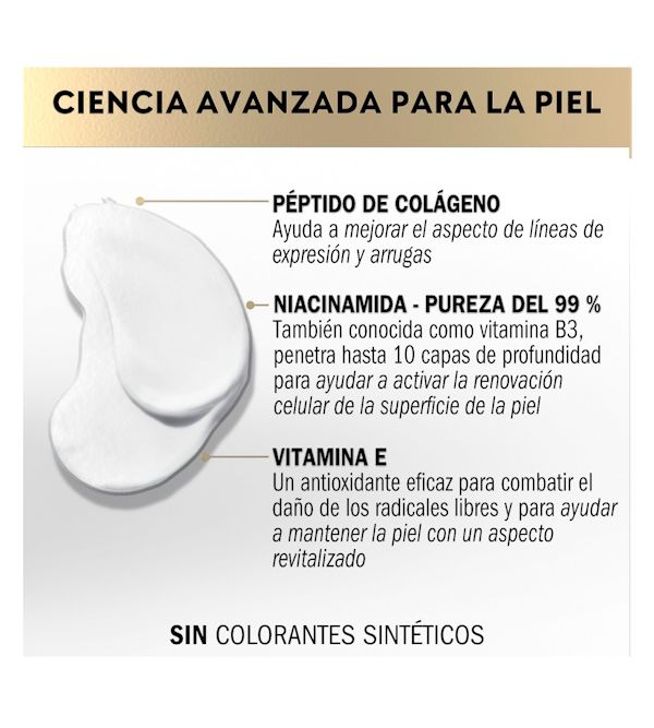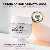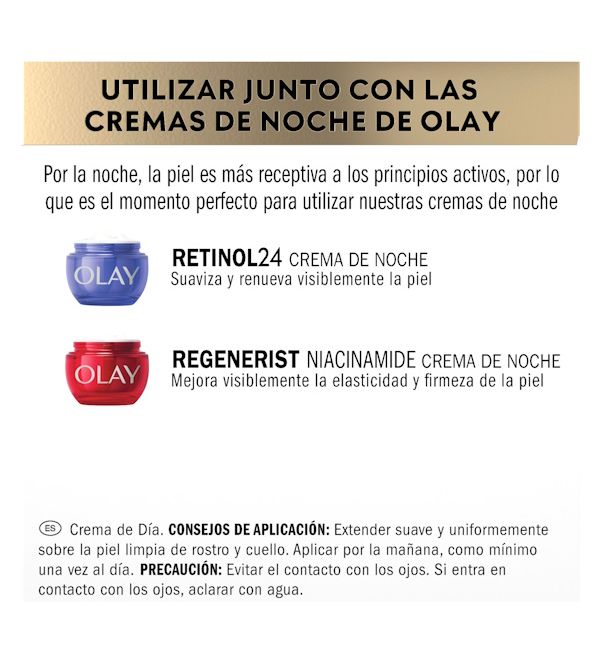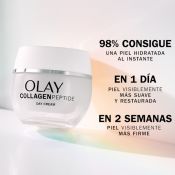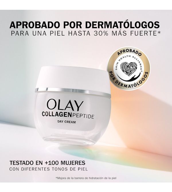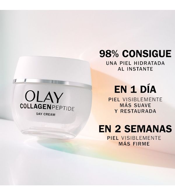 ¿La piel necesita una hidratante diurna restauradora avanzada? Descubre nuestra potente crema facial con péptidos de colágeno de Olay, que proporciona resultados transformadores en la piel de forma instantánea y prolongada. Esta crema hidratante está elaborada con péptidos de colágeno, que ayuda a mejorar el aspecto de las líneas de expresión y las arrugas, Niacinamida al 99% pura, que penetra hasta 10 capas de profundidad para ayudar a activar la renovación celular superficial, y Vitamina E, un antioxidante de eficacia probada conocido por combatir los daños causados por los radicales libres y ayudar a mantener la juventud de la piel. Disfruta del poder de la hidratación 24 horas, manteniendo tu piel hidratada durante todo el día con una sensación no grasa en la piel. En solo un día, la piel está visiblemente más tersa y restaurada. Experimenta una piel visiblemente más fuerte y firme en 14 días. Di adiós a las cremas faciales pesadas: esta fórmula es ligera y se absorbe rápidamente proporcionando hidratación durante todo el día. Ha sido aprobada dermatológicamente por la Skin Health Alliance por su eficacia para ayudar a conseguir una piel hasta un 30%* más fuerte. * mejora de la barrera de hidratación.