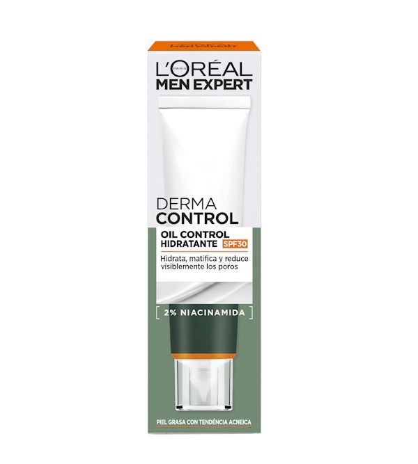 La nueva crema facial Derma Control Oil-Control de L'oréal Paris Men Expert es una crema hidratante diseñada especialmente para hombres, con activos recomendados por dermatólogos que reducen la producción de grasa y cuidan la piel propensa a acné e imperfecciones. Además, su fórmula con SPF30 protege contra los rayos UV, ayudando a prevenir el daño causado por los UV y mantener tu piel saludable y equilibrada.