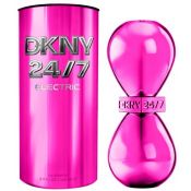 DKNY 24/7 Electric, está inspirada en una mujer que está simpre en marcha, siempre en movimiento, siempre de un lugar a otro. Es imparable, indomable, inolvidable. El frasco en forma de reloj de arena simboliza el flujo continuo del tiempo en la siempre activa ciudad de Nueva York. Sus notas de bergamota italiana, jazmín y vainilla harán de ella una mujer imparable