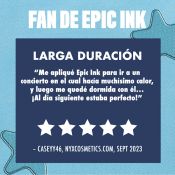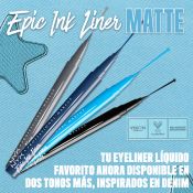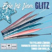 Acentúa la mirada con el eyeliner metalizado Epic Ink Glitz. NUEVO eyeliner líquido Epic Ink Glitz efecto metalizado. Un delineador ultrapreciso de efecto glitter con punta de pincel que pigmenta de una sola pasada. Resistente al agua, no se cae. Hasta 24 horas de duración.