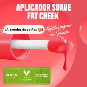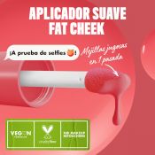 Cómo usar: Aplicar el Fat Cheeks Juicy Blush directamente sobre las mejillas con el aplicador y difuminar con movimientos ascendentes hasta lograr el rubor deseado. Se puede construir en capas para mayor intensidad o mantener un acabado sutil y fresco.