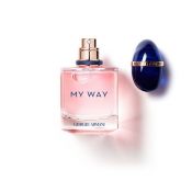 My Way, el perfume floral de mujer de Giorgio Armani que simboliza los encuentros olfativos alrededor del mundo: La bergamota de Italia se encuentra con la flor de naranjo de Egipto en una salida brillante y luminosa. En el corazón, la tuberosa se encuentra con el jazmín, ambos de la India, para firmar este radiante bouquet de flores blancas que aporta generosidad y armonía. El encuentro final de madera de cedro de Virginia con la cálida vainilla de Madagascar y almizcles blancos otorgan el perfecto fondo envolvente. Un perfume de flores amaderado creado con ingredientes de distintas partes del mundo y de manera solidaria. El frasco encapsula el conjunto de experiencias que te hacen ser como eres; es el talismán que siempre te acompaña y captura los recuerdos vividos. El tapón azul es una metáfora del mundo que nos une a todos; abrazado por un anillo dorado con la firma de Giorgio Armani, que no solo le confiere ese aspecto de joya a nuestro talismán, sino que simboliza el camino que cada mujer va tomando en su vida.
