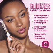 Glimmer. Shimmer. Shine. NUEVA Revlon Glimmer Liquid Shadow™: sombra de ojos líquida que aporta un color perlado, luminoso y multidimensional en un solo paso. Se aplica, se difumina y se seca uniformemente para una mirada impactante durante 24 horas. Su refrescante fórmula a base de agua resiste a la grasa, con un color vibrante que no se cuartea, se corre ni se desvanece.