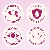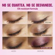 MIRADA IMPACTANTE: Color perlado luminoso en un solo paso, con perlas reflectantes que crean un acabado multidimensional. • 24 HORAS DE DURACIÓN: Oil-resistant, no se cuartea, se corre ni se desvanece. Sensación ligera y no pegajosa. • SIN MANCHAS, SIN ESFUERZO: Aplicador flexible de punta redonda para una aplicación precisa y sin complicaciones, fijando el máximo brillo y color. • SENSACIÓN LIGERA Y NO PEGAJOSA: Refrescante fórmula a base de agua que se siente ligera en la piel. • 6 TONOS CONSTRUIBLES: Apto para ojos sensibles y lentes de contacto. Testado oftalmológicamente.