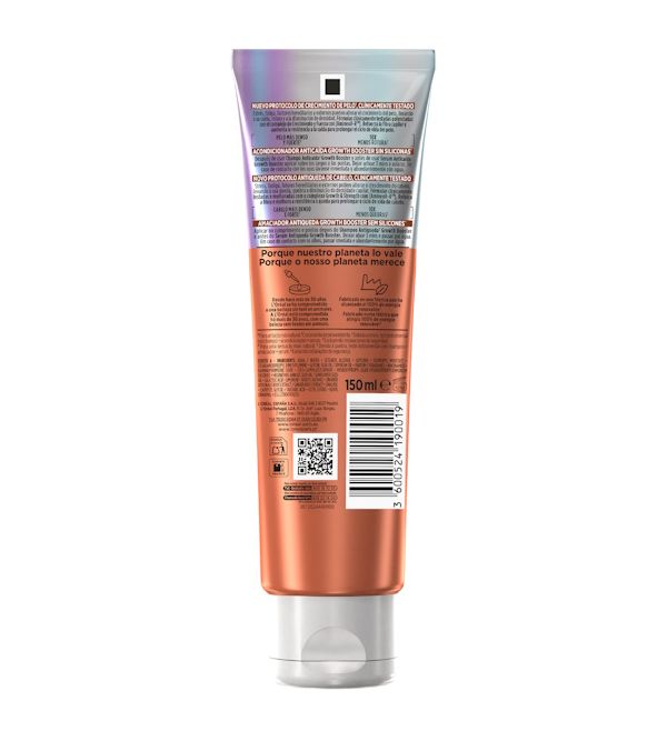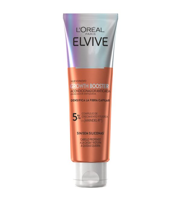 El acondicionador anticaída L'Oréal Paris Elvive Growth Booster está diseñado para densificar y fortalecer la fibra capilar. Formulado con un 5% de Complejo de Crecimiento y Fuerza y potenciado con Aminexil-R™, combate la caída del cabello y reduce la rotura mientras mejora la densidad capilar. Ideal para cabellos propensos a la caída y rotura, este acondicionador sin siliconas* ofrece un cuidado ligero que refuerza y prolonga el ciclo de vida del cabello.
