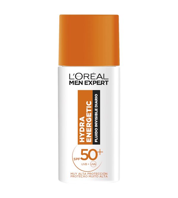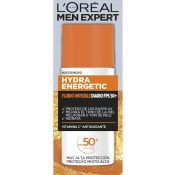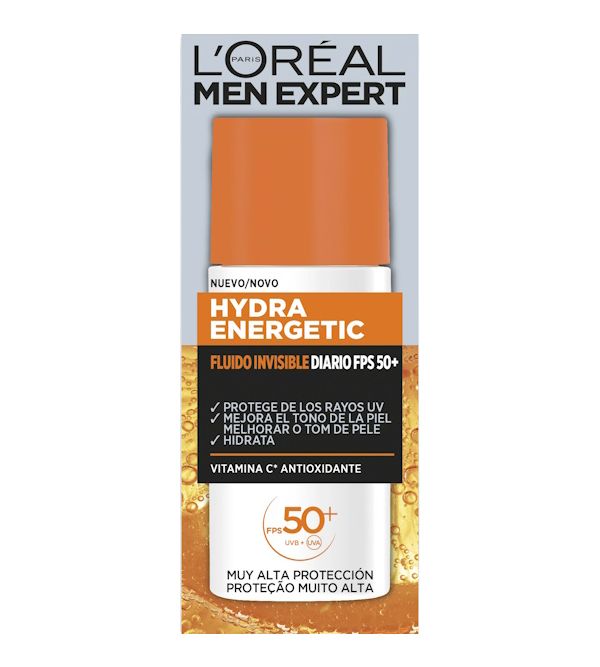 Descubre Hydra Energetic Fluido Invisible Diario FPS 50+ de L'Oréal Paris Men Expert, un protector solar avanzado diseñado especialmente para hombres. Su fórmula combina la potente acción antioxidante de la vitamina C con la revolucionaria tecnología Netlock™, ofreciendo una protección UVB/UVA de alta resistencia. Este fluido ultraligero se absorbe rápidamente, dejando un acabado suave y sin marcas blancas. Apto para pieles normales a secas, incluso las más sensibles, su textura multirresistente garantiza una alta protección frente al agua y la fricción. Ideal para hidratar, revitalizar la piel y mejorar el tono en cada aplicación diaria.
