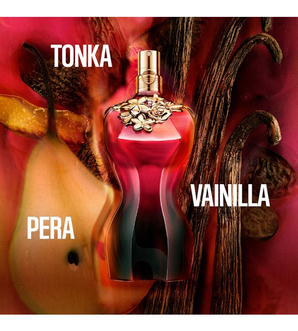 En el Jardín de Gaultier, donde todos los pecados están permitidos, la nueva mujer original La Belle Le Parfum intensifica su poder de seducción con una adictiva sensualidad: un acorde verde de pera enriquecido con el sensual jazmín, el haba tonka y la adictiva vainilla.