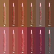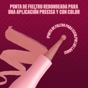 Dibuja el contorno de los labios con la punta redondeada. Para un efecto más completo, rellena el interior y difumina suavemente para lograr un acabado uniforme y duradero.