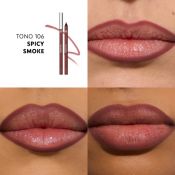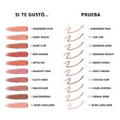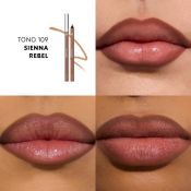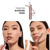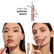 Afila antes de usar, traza el contorno natural de los labios o ligeramente por fuera, luego rellena o aplica una capa con color de labios.