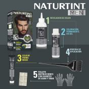 NATURTINT MEN tinte natural es una coloración permanente en gel para cabello y barba especialmente diseñada para el hombre. NATURTINT MEN tinte sin amoníaco 170ml, se funde con el tono natural de tu cabello y barba cubriendo las canas o dando un toque de color revitalizante, sin renunciar a la salud de tu cabello. Cubre totalmente las canas de forma permanente, manteniendo su intensidad lavado tras lavado. Cuenta además con la exclusiva certificación Certified Biobased Product, por su alto contenido en ingredientes de base biológica, sostenibles y renovables. Testad dermatológicamente.