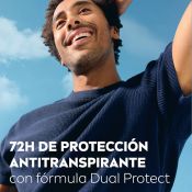1. Protección Derma 72h Active 2. Fórmula Dual Protect con dos activos antibacterianos y 0% alcohol para una protección de larga duración 3. 72 horas de protección antitranspirante que cuida tu piel 4. Sin alcohol etílico 5. Dermatológicamente comprobado 6. Fórmula sin microplásticos 7. Envase reciclable