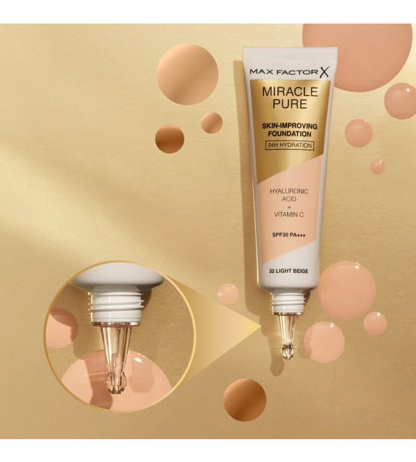 Miracle Pure foundation es la primera base de maquillaje de cuidado de la piel de Max Factor.