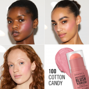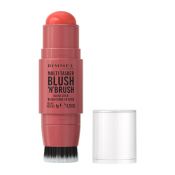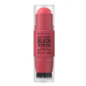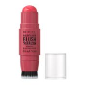 Aplica el Blush ’N’ Brush directamente sobre las mejillas con la parte del stick: un toque en cada pómulo es suficiente. Luego, difumina con la brocha incorporada para conseguir un acabado natural y uniforme.