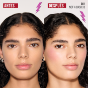 Como bronceador, deslízalo por las mejillas, las sienes, la nariz, la barbilla, el cuello y la frente.