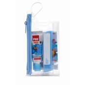 El neceser PHB Pocoyó contiene un cepillo PHB Plus petit y un gel dentífrico de 15ml en un práctico neceser para que los peques puedan cuidar de su higiene dental en el cole, campamentos