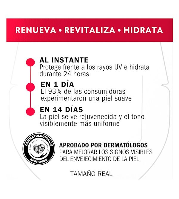 En un solo día, el 93% de las mujeres notaron una piel más suave. Experimenta un cutis más firme y líneas de expresión reducidas en 14 días. Di adiós a las cremas faciales pesadas y grasas y da la bienvenida a nuestra avanzada tecnología Olay SolaSheer SPF30: una eficaz protección UVA y UVB de amplio espectro, que protege tu piel de los rayos nocivos y se absorbe sin esfuerzo para proporcionar una sensación ligera, no grasa y no pegajosa sobre la piel. Nuestra fórmula ha sido aprobada dermatológicamente por la Skin Health Alliance por su eficacia para combatir los signos visibles de envejecimiento de la piel.