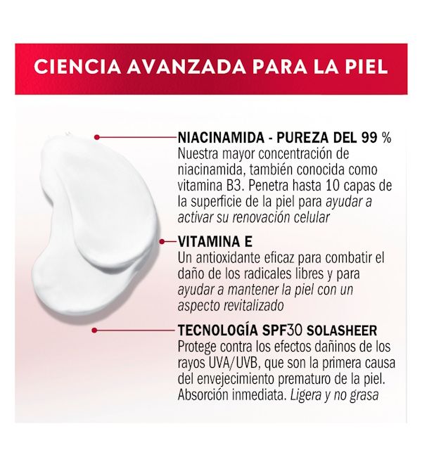 ¡Desafía los 10 signos de la edad con la crema hidratante Olay Regenerist Niacinamide SPF30! Nuestra avanzada crema hidratante de día reafirmante activa con SPF 30 proporciona resultados transformadores en la piel de forma instantánea y prolongada.