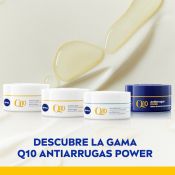 Q10 Antiarrugas POWER Crema de Noche: reduce visiblemente las arrugas en 4 semanas. Su fórmula contiene la coenzima Q10 más pura de NIVEA® y asegura una acción antiarrugas 24h. Para una piel visiblemente más firme y arrugas reducidas en 7 días. Su innovadora fórmula regenera la piel mientras duermes y estimula la producción de colágeno*. Para una piel firme, con mayor fuerza y elasticidad. Ofrece una corrección visible de las arrugas: reduce 3 tipos de arrugas, las de la frente en un 27%**, las patas de gallo en un 15%** y las de la zona de las mejillas y alrededor de la boca en un 11%**. En tan solo 24 horas nutre intensamente y estimula la regeneración de las células*. En una semana, la piel se vuelve visiblemente más firme en un 23% y las arrugas se ven reducidas**. Mejora continuada˜ y prevención de nuevas arrugas tras 4 semanas. Dermatológicamente comprobado. *in-vitro **Estudio de 1 semana con 42 mujeres, 2021 ~Estudio de 4 semanas con 41 mujeres, 2021. Aplicar a diario sobre la piel limpia en cara, cuello y escote, evitando el contacto directo con los ojos.