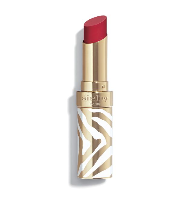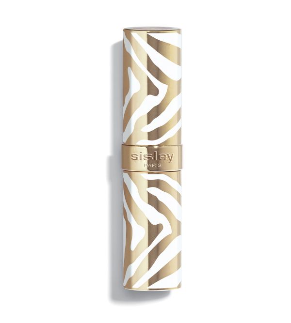 Su carcasa, similar a la de una joya, está adornada con rayas de cebra blancas y doradas, como se ve en la colección Le Phyto-Rouge. Está disponible en formato recargable.
