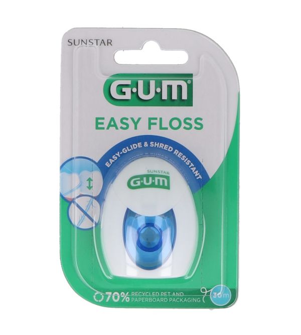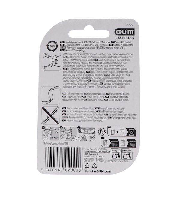 Producida con un monofilamento resistente al deshilachado, el hilo dental GUM Easy se desliza fácilmente incluso entre los espacios más estrechos y bajo la línea de la encía Es muy sencilla de utilizar y su acabado satinado la hace especialmente suave con las encías