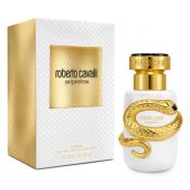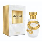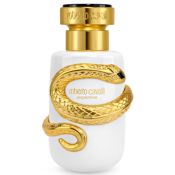 Serpentine es un perfume dinámico de intrépida sensualidad, diseñado para la mujer que se mueve con una confianza hipnótica, tentadora y sensual. El frasco refleja la opulencia de la fragancia que contiene. Está adornado con una serpiente dorada que envuelve el frasco blanco; este elemento distintivo evoca el diseño de los accesorios de moda de Roberto Cavalli.
