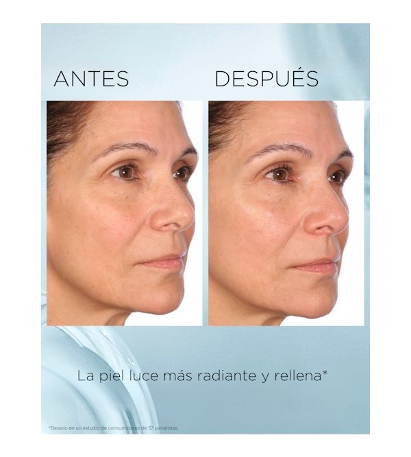 Con una fórmula de alta eficacia que proporciona un efecto filler cosmético que aumenta los niveles naturales de Ácido Hialurónico en la piel un 109%**