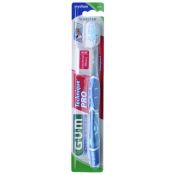 El cepillo de dientes GUM Technique Pro con sus filamentos a doble nivel elimina 7 veces más placa bacteriana entre los dientes y bajo la linea de la encía que otros cepillos convencionales