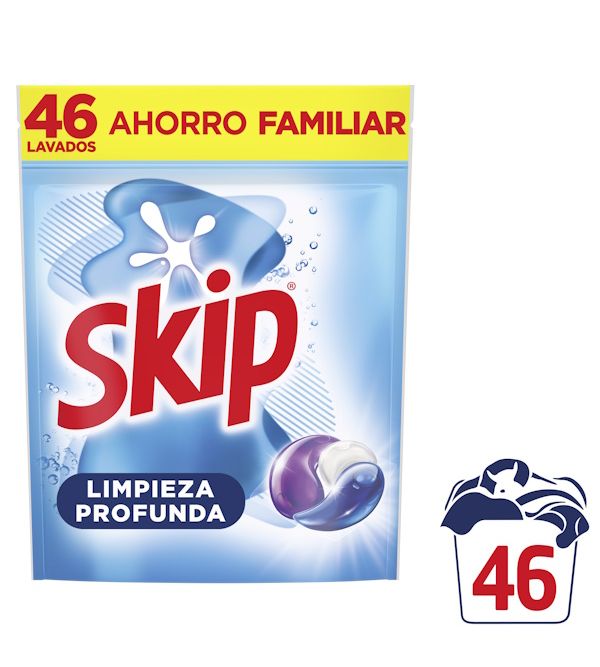 El producto debe conservarse en sus envases originales evitando temperaturas extremas. Seguir la dosificación recomendada en la etiqueta del producto al momento de su uso. Además, el detergente en cápsulas Skip Limpieza Profunda es ideal para lavados a baja temperatura y para ciclos cortos de 30 minutos, lo que permite un ahorro tanto en el consumo de agua como en el de electricidad.