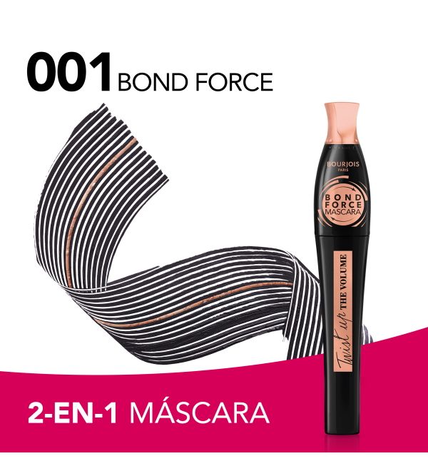 ¡Dale fuerza a tus pestañas con la nueva máscara Twist Up Bond Force de Bourjois! Inspirada en los sérums reparadores de cabello, ofrece volumen instantáneo y cuidado duradero. Formulada con el activo Lash Bonding, que combina arginina, biotina y péptidos, las pestañas se ven más gruesas y se sienten más fuertes* ¡Dale a tus pestañas un entrenamiento y utiliza el exclusivo cepillo giratorio de la máscara para conseguir un 139% más de longitud y 6 veces más volumen** de la raíz a la punta! *En 4 semanas **En comparación con las pestañas sin maquillar