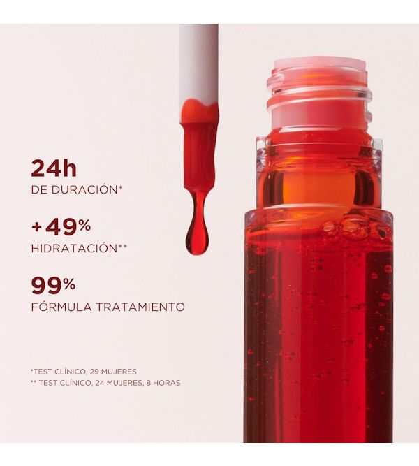 Intensidad personalizable Acabado mate Fórmula a prueba de transferencias Una sensación apenas perceptible Hidrata y suaviza los labios.