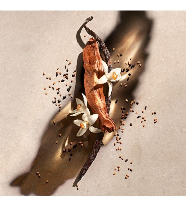Una fragancia femenina con notas de sésamo tostado, azahar y vainilla.